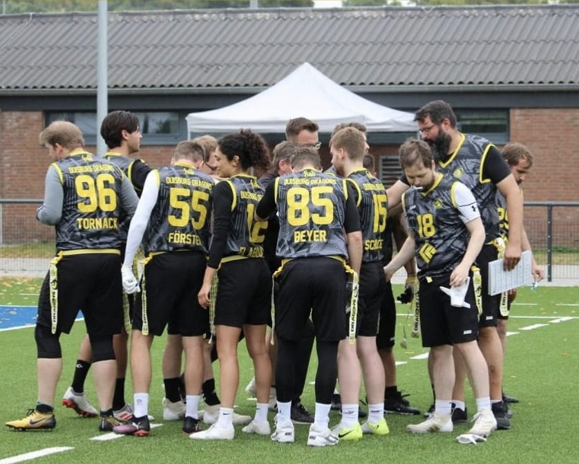 Kelkheim im Taunus ist den meisten Menschen in Deutschland nicht wirklich ein Begriff. Für den Flag-Football in Deutschland ist die Kleinstadt aber eine Metropole. Hier liegt die Heimat der Kelkheim Lizzards, die viele Jahre lang das beste Team Deutschlands waren. Hier wurde der erste dedizierte Platz in Deutschland für Flag Football gebaut. Und hier fand der letzte reguläre Spieltag der DFFL-Saison 2025 für die Duisburg Dragons statt. Beide Felder wurden gestreamt. Zu finden ist der Stream von Feld 1 hier und Feld 2 hier.